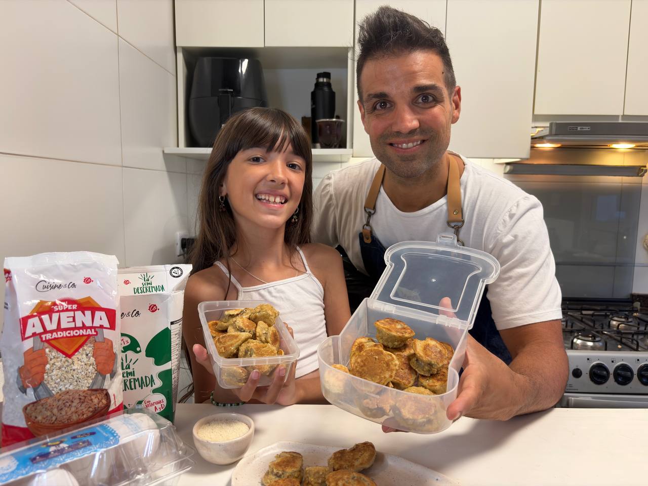 Mezclás 1 huevo con avena instantánea o la podés procesar como harina de avena entre 1 y 2 cucharadas colmadas depende el tamaño del huevo, fÃjate la textura que debe quedar en el vÃdeo. Agregamos 1 cucharadita de polvo de hornear y 1 a 2 cucharadas de leche, de nuevo mirá la textura en imágenes. Agregás en esta mezcla cruda rodajas gruesitas de banana, embadurnás bien cada una y las colocas una por una en sartén antiadherente vuelta y vuelta hasta dorar bien. Si les gusta agregar miel, coco rallado, chocolate o lo que prefieran!